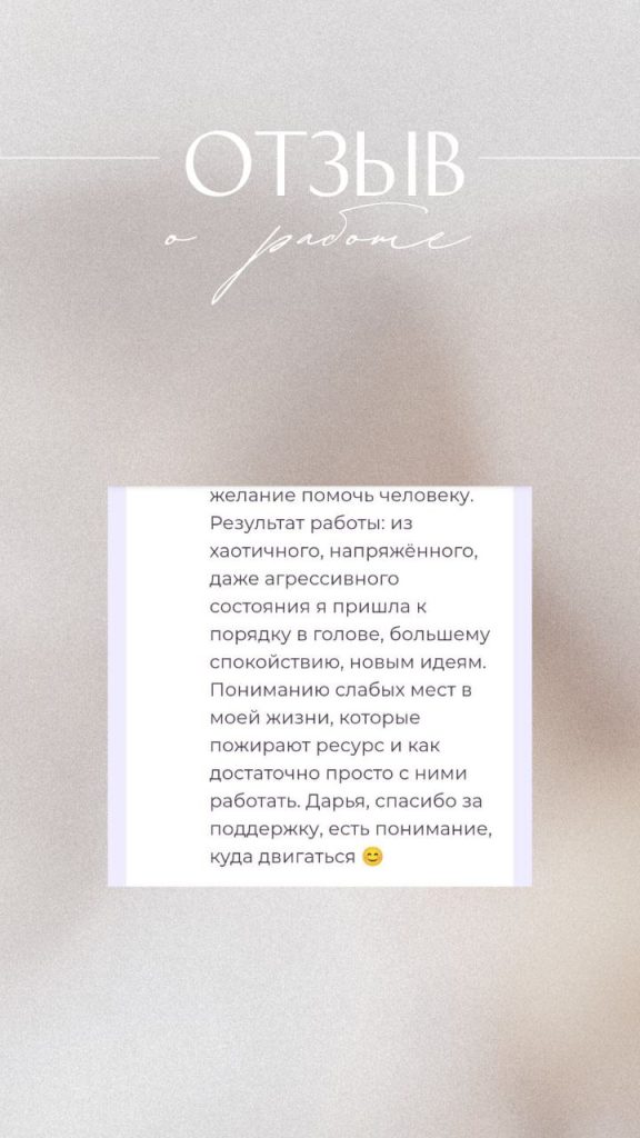 - проживание кризисов и утрат. Будь то возрастной кризис, развод или потеря близкого человека — я стану той бережной опорой, которая поможет пройти через боль к новому этапу жизни.