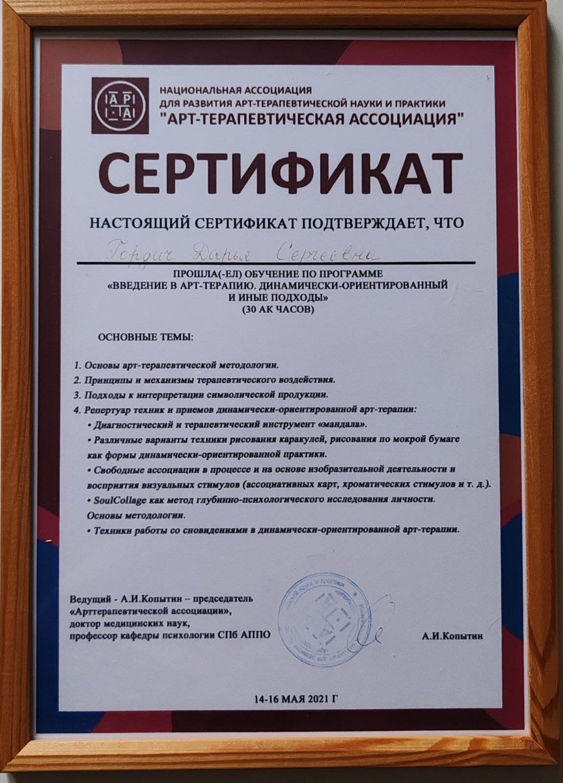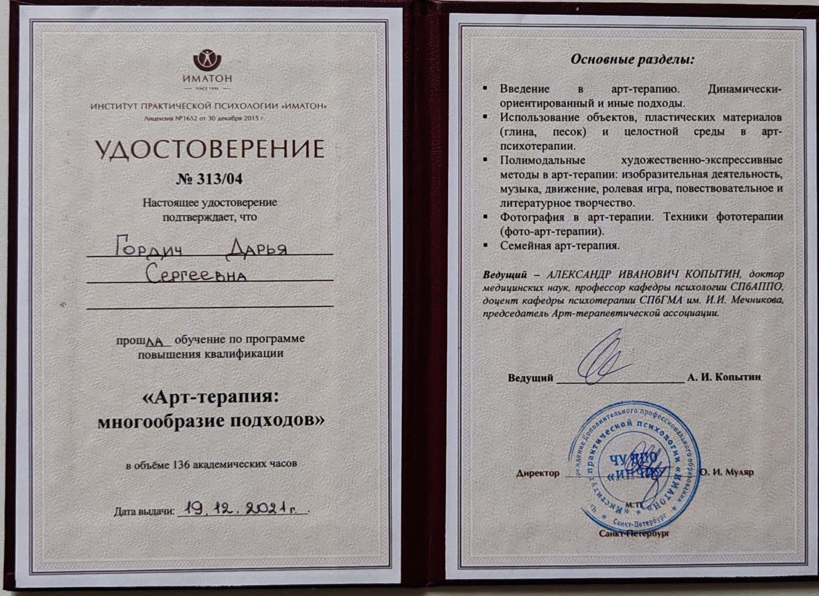 В своей работе я использую интегральный подход, объединяющий эффективные методы из разных направлений психотерапии на единой нейронаучной основе. В практике применяю когнитивно-поведенческую терапию (КПТ), системную поведенческую терапию, клиент-центрированный подход Карла Роджерса, арт-терапию, глубинную психологию, технологию факт-карт. Также владею методом ДПДГ (десенсибилизация и переработка движением глаз) — современным и научно доказанным способом работы с травматичным опытом, последствиями стресса, эмоциональными перегрузками и психосоматическими проявлениями.