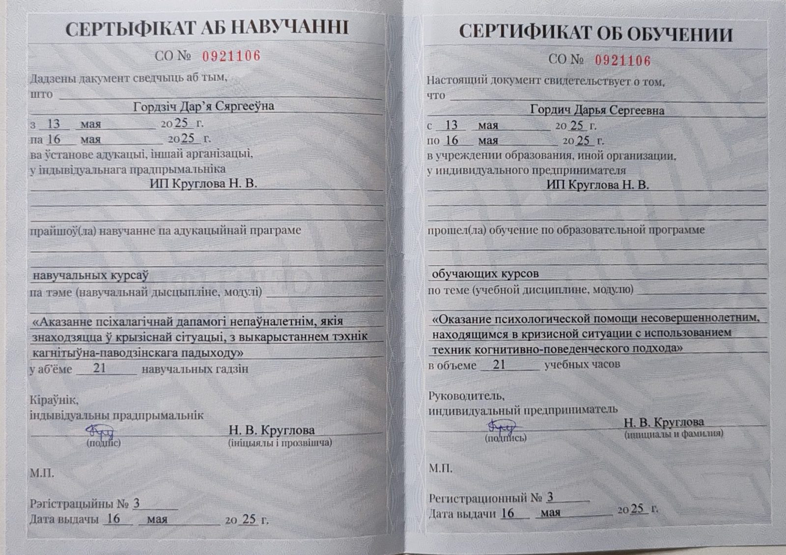 За годы практики я провела более 700 психологических консультаций, помогая людям справляться с тревогой, страхами, эмоциональным напряжением, кризисными состояниями и жизненными трудностями.